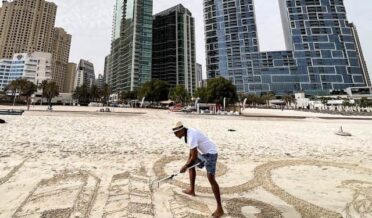 دبئی کے ساحل پر سیکڑوں فن پارے بنانے والا فنکار